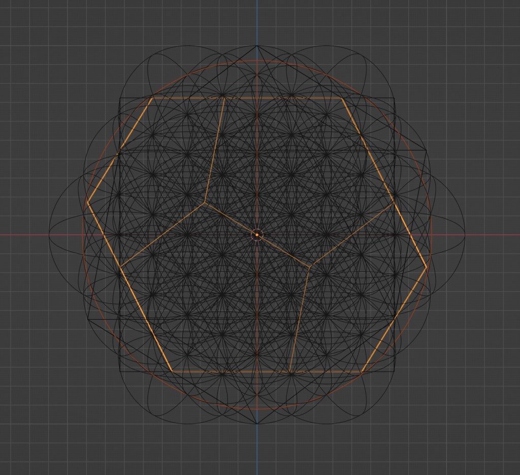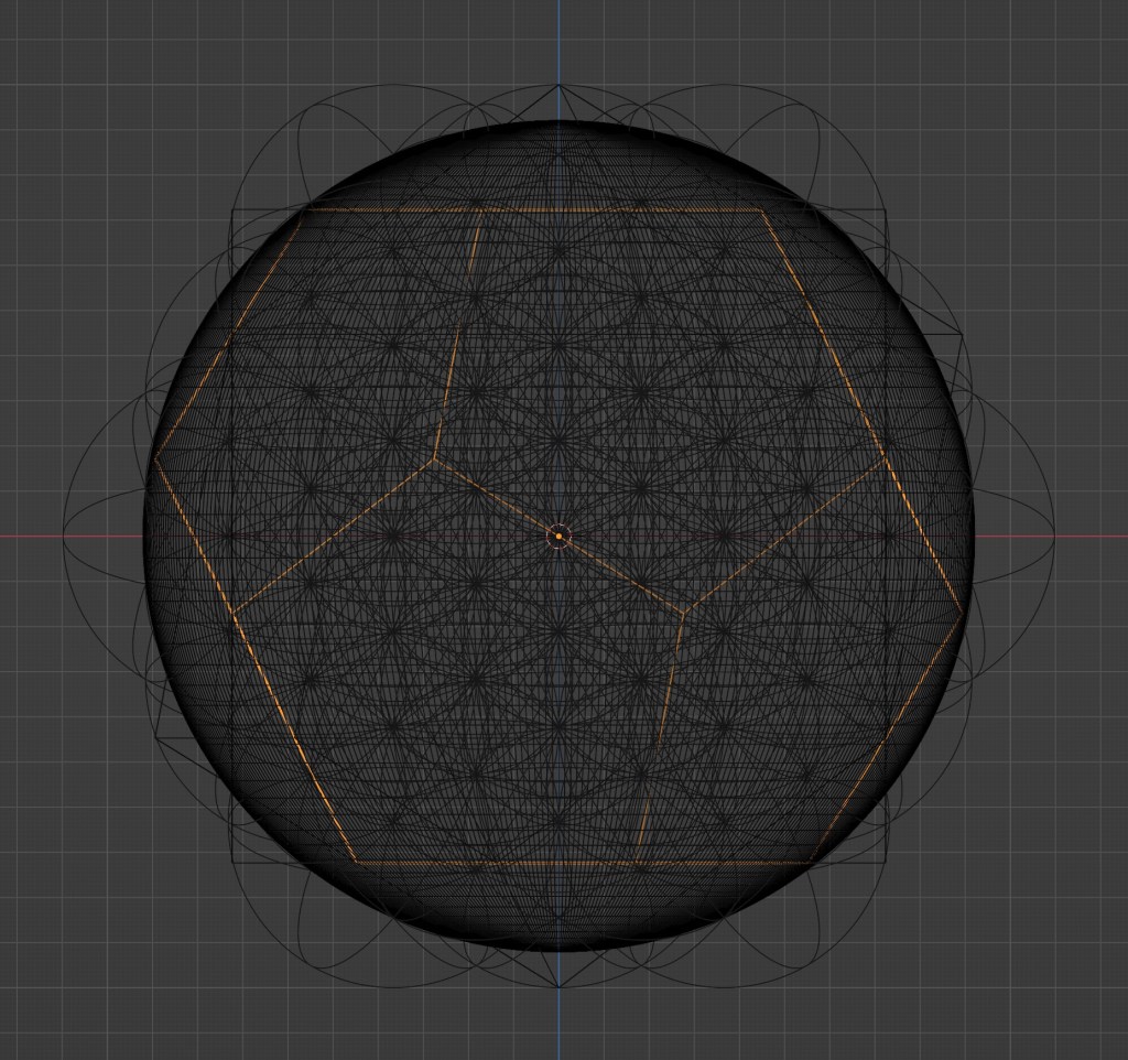 しかも、円積問題の解として現れた円を元にした球は、立体のFlower of Life自体の交点とは交わらない。あくまで平面でトレースした場合に現れる交点をその円は通る。