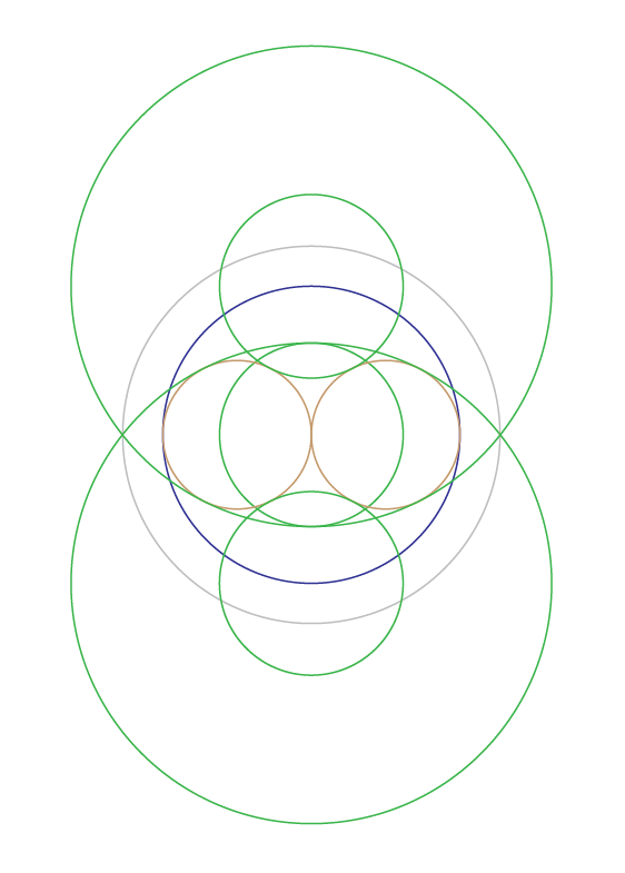 この図形に描かれている中央の緑色の円とその上下にある大きい円は、曲線を用いたΦの比率が表れる。この図形に表れる状態は、この世界がバランスと調和の中にあり、それぞれの関わりもまた、バランスと調和の中にあるという有り様を示したものであると言える。